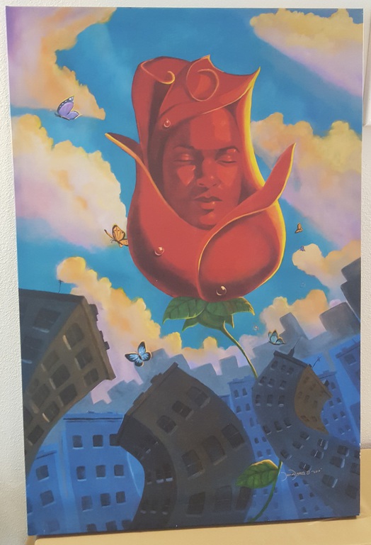 Demar now Armed with paint, canvas and a new perception of life, intends on taking the viewers on a exploration of the imagination.Demar feels similar to Joseph from Genesis. These life-inspiring images keep recurring to him until he paints them out of his mind. He has worked with a number of celebrity clientele, and companies creating captivating illustrations across many industries such as children’s books, book magazine and cd covers. Demar paints stylized surrealism within an abstract composition finding the beautiful struggle though life's opposition.